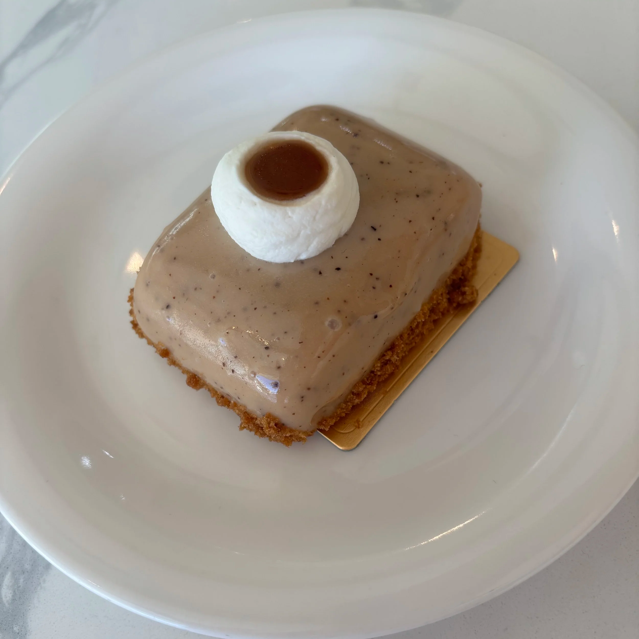 Pâte a chou baked with sesame, filled to order with black sesame cream and a drizzle of mesquite honey