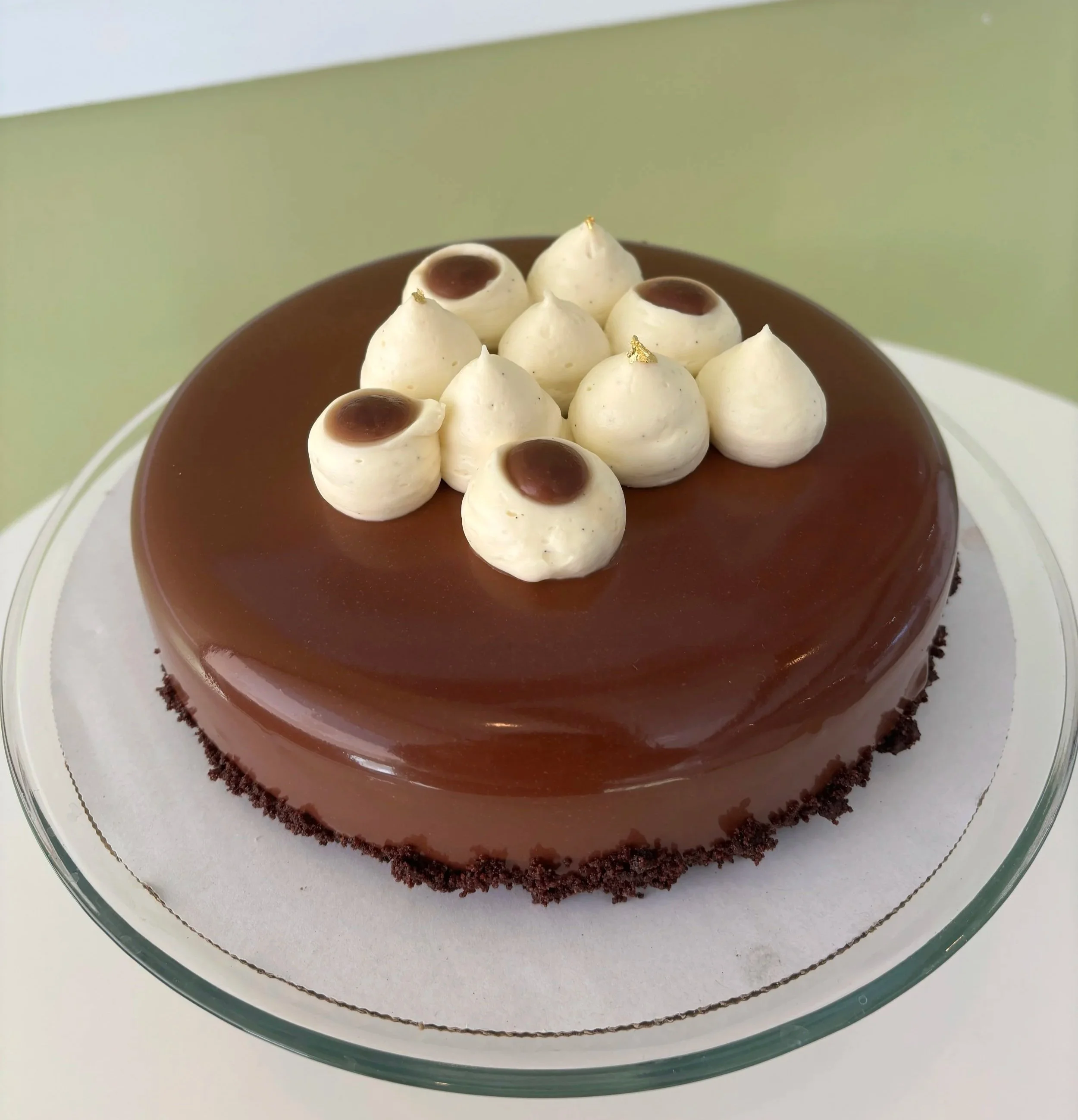 Decadent Swiss chocolate cream & chocolate chiffon soaked in brandy